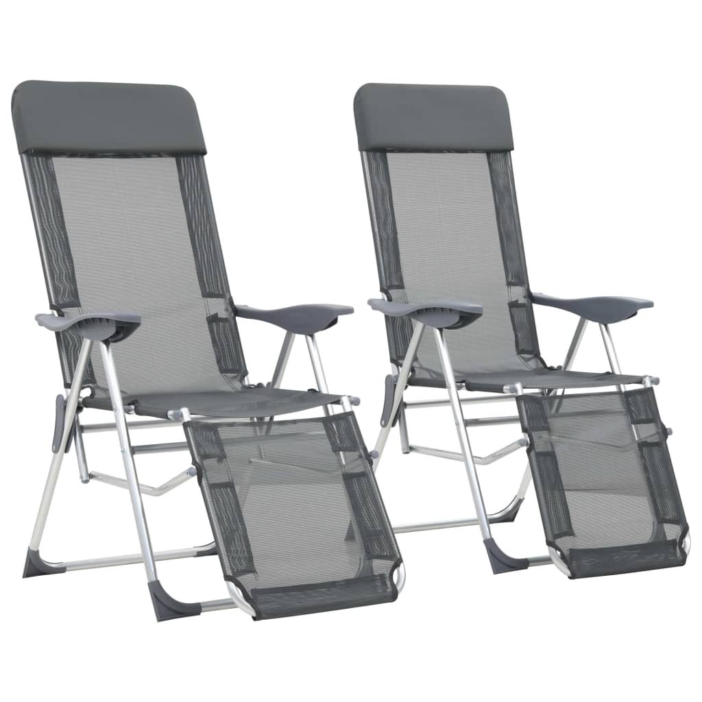 Skládací kempingové židle s podnožkami 2 ks šedé textilen 360145