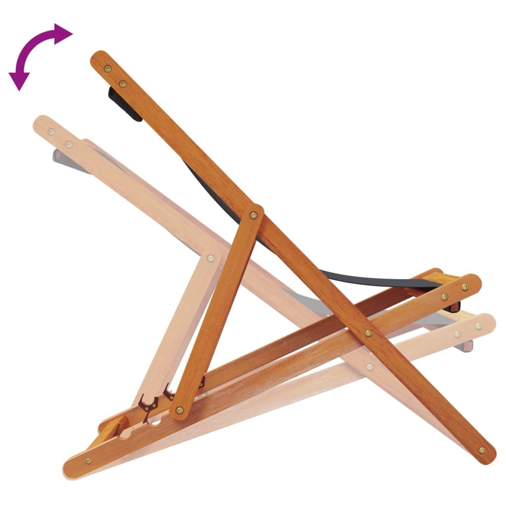 Relaxujte v těchto polohovatelných křeslech na pláži, v kempu nebo na zahradě! Skládací plážová křesla jsou vyrobena z masivního eukalyptového dřeva a polyesterové tkaniny, jsou odolná vůči povětrnostním vlivům a mají dlouhou životnost.