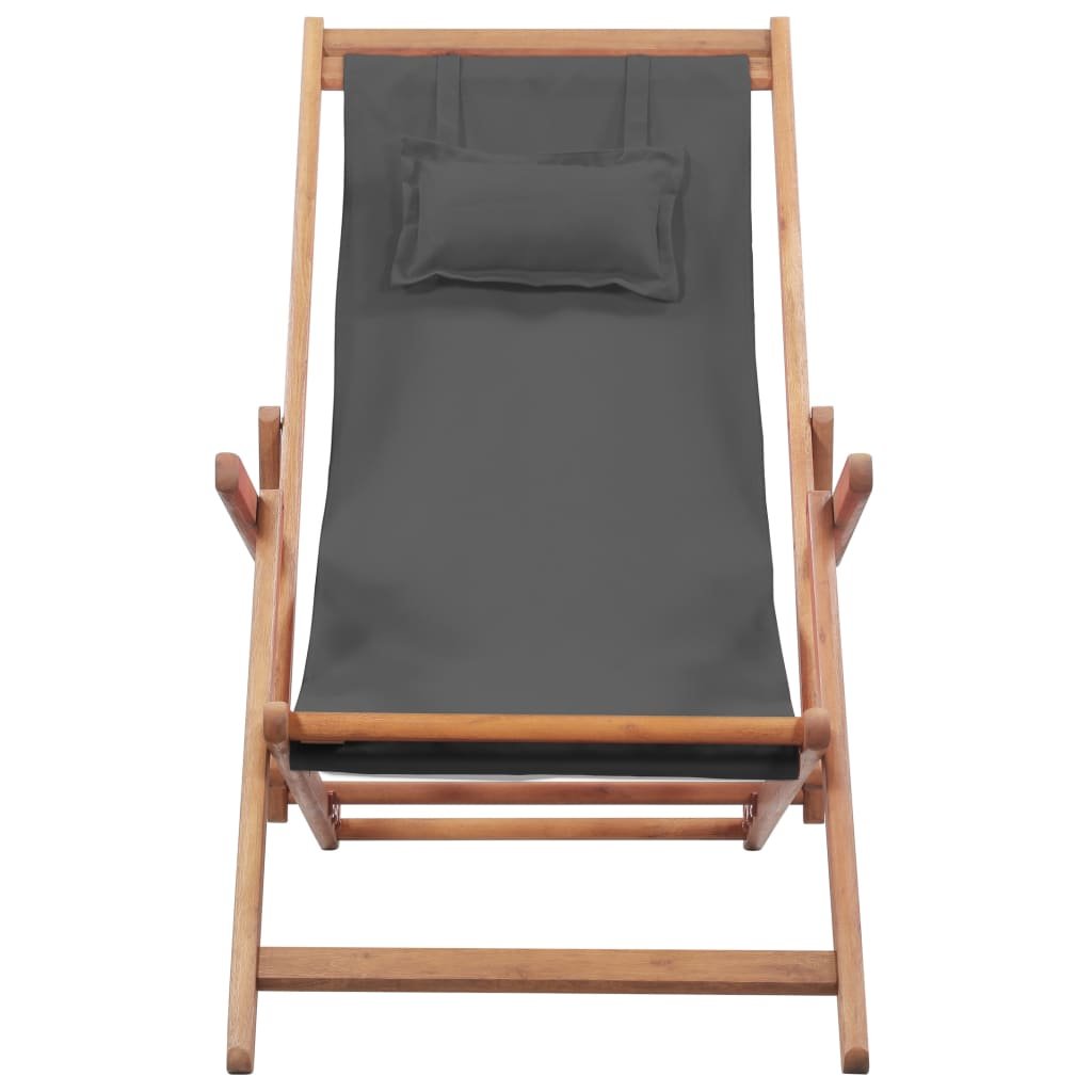 Skládací plážové křeslo látka a dřevěný rám šedé 43997
