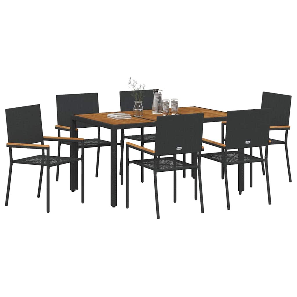 Zahradní jídelní souprava 7 pcs Černá a Dřevo 150 x 90 x 75 cm 3365408