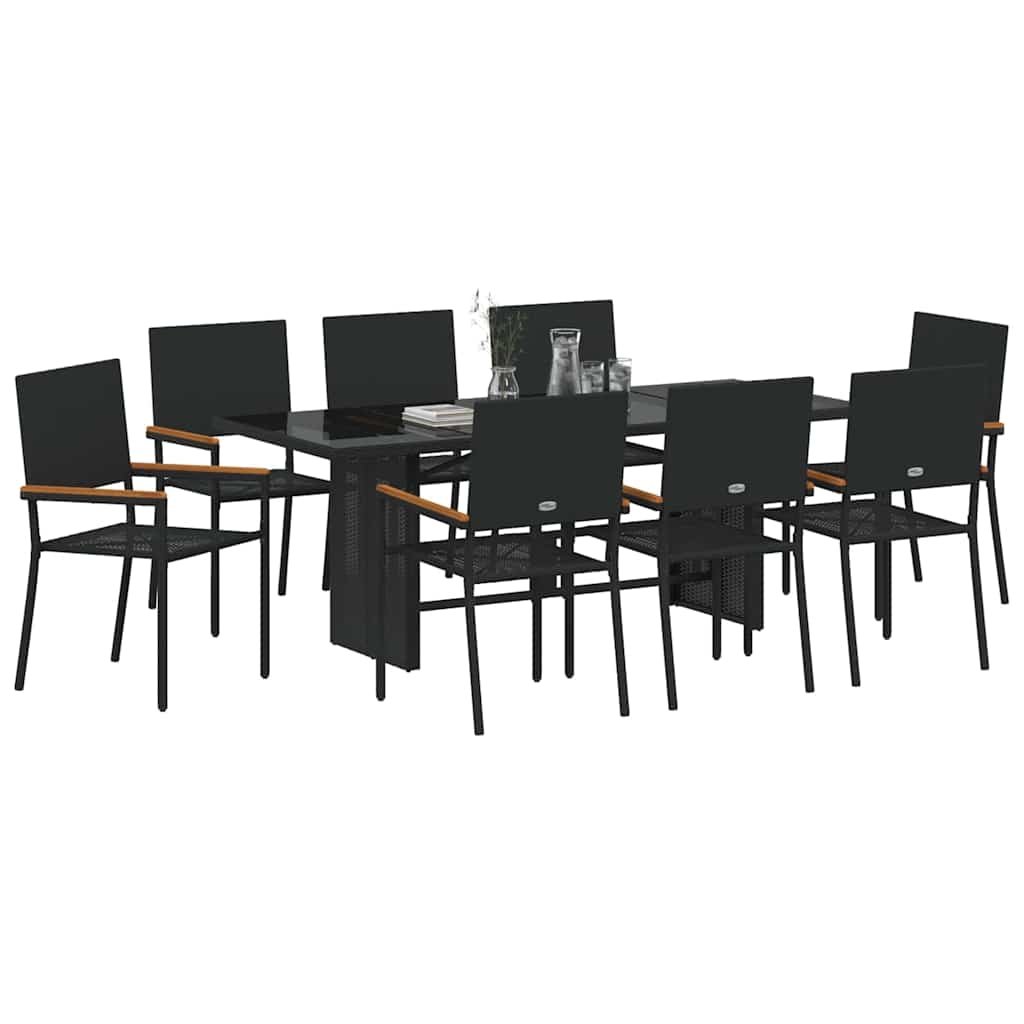 Zahradní jídelní souprava 9 pcs Černá 190 x 80 x 75 cm 3365427