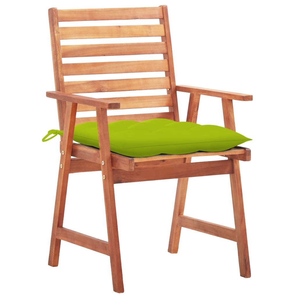 Tato moderní sada dřevěných jídelních židlí s poduškami dodá vaší zahradě, terase či dvorku nádech přírodního stylu. Představuje skvělou volbu pro stolování na čerstvém vzduchu.