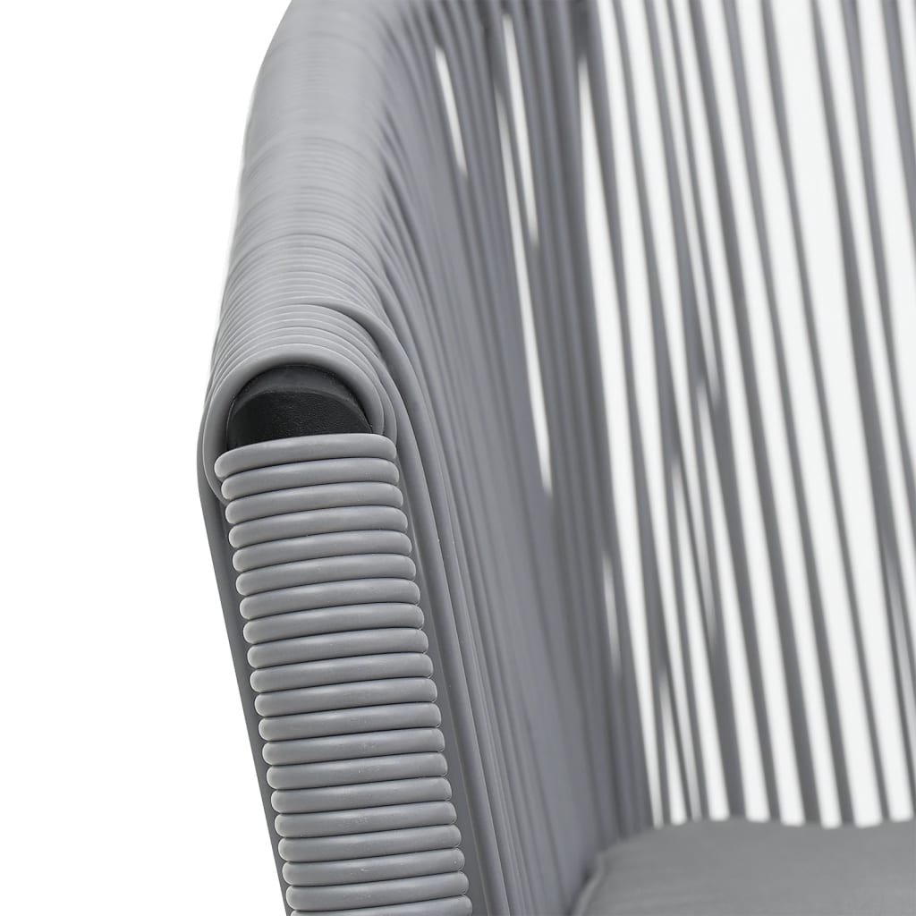 Tato sada židlí je vyrobena z PE ratanu vyplétaného přes ocelový rám s jemným práškovým nástřikem, je tedy stabilní a odolná vůči nepříznivému počasí a UV záření. Pohodlné polštáře jsou potaženy voděodolnou polyesterovou tkaninou, vhodnou pro venkovní použití.