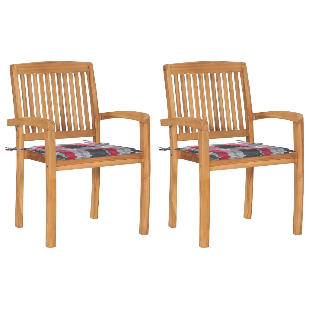 Zahradní židle 2 ks červené kárované podušky masivní teak 3063265