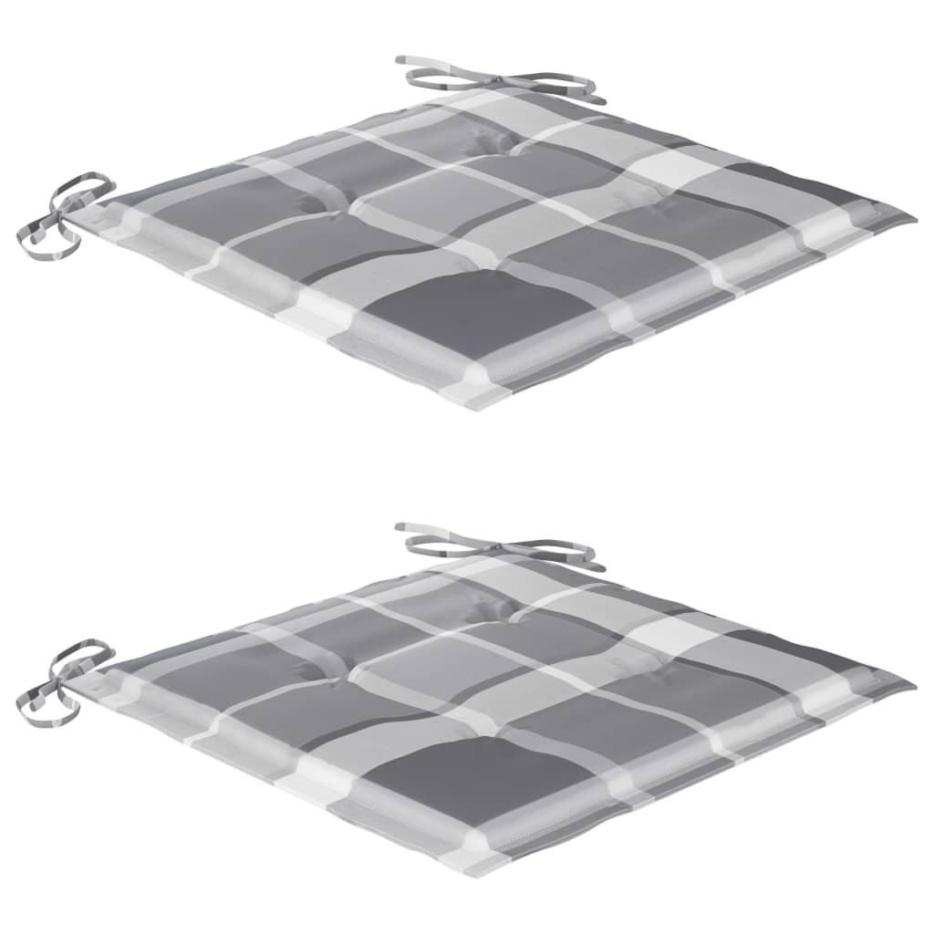 Zahradní židle 2 ks šedé kárované podušky masivní teakové dřevo 3063266
