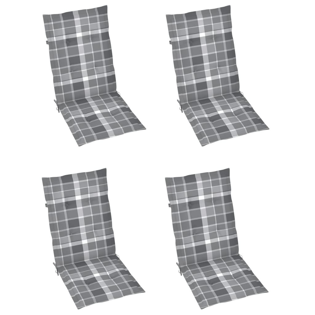 Zahradní židle 4 ks šedé kárované podušky masivní teak 3065544