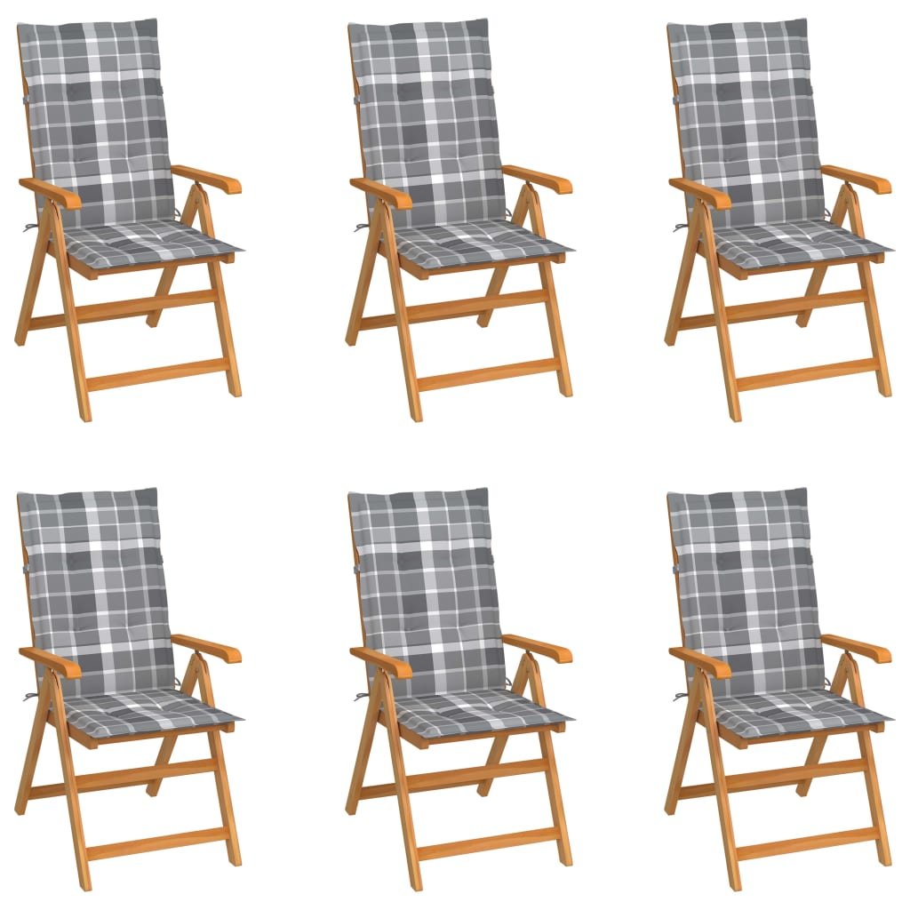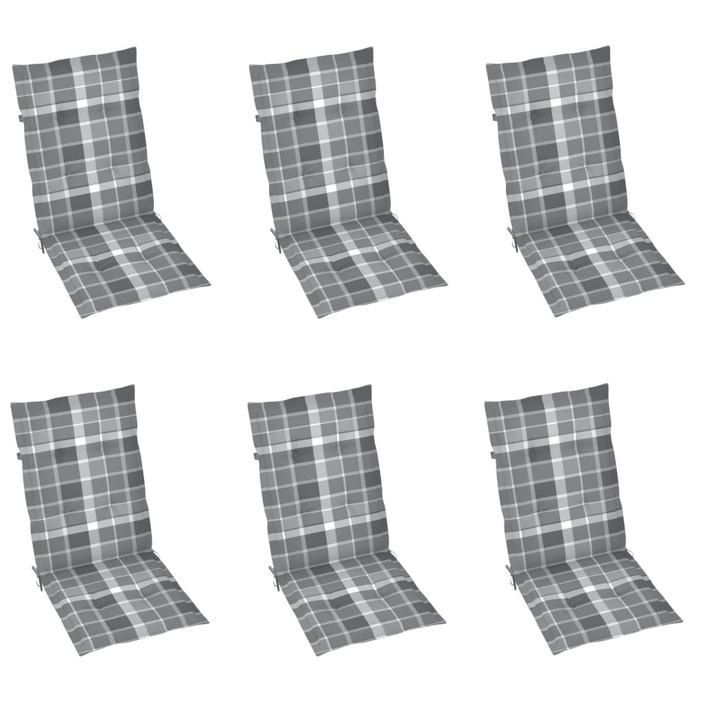 Zahradní židle 6 ks šedé kárované podušky masivní teak 3065574
