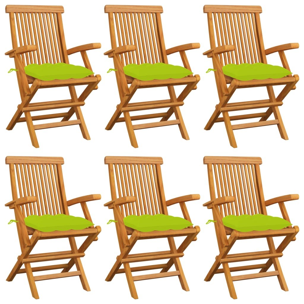 Zahradní židle s jasně zelenými poduškami 6 ks masivní teak 3062567