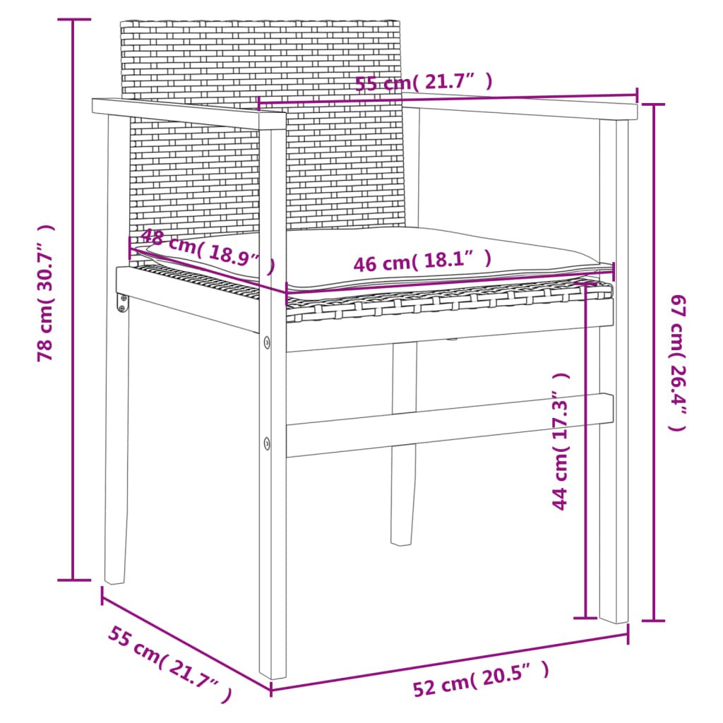 Zahradní židle s poduškami 2 ks šedé polyratan a masivní dřevo 368712