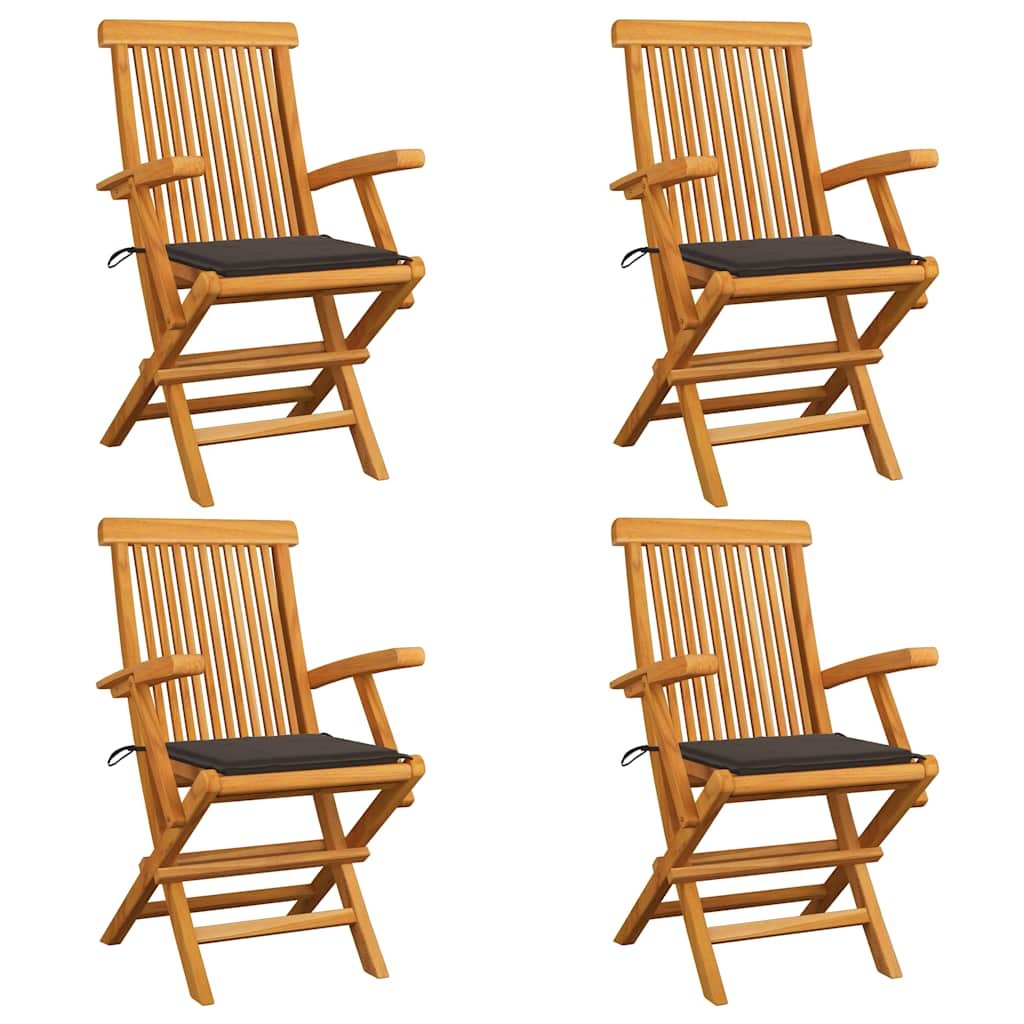 Zahradní židle s šedohnědými poduškami 4 ks masivní teak 3065625