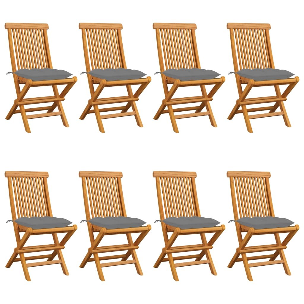 Zahradní židle s šedými poduškami 8 ks masivní teak 3072933