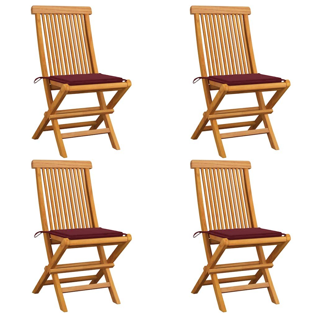 Zahradní židle s vínovými poduškami 4 ks masivní teak 3062577