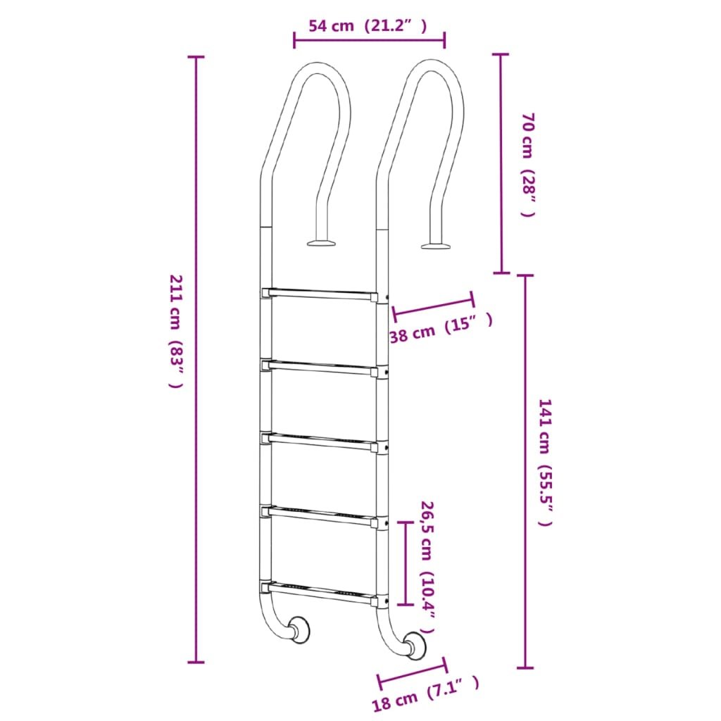 Bazénový žebřík 54 x 38 x 211 cm nerezová ocel 304 93463
